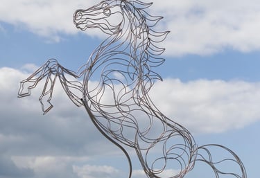 Always pushing the boundaries of creativity, John mastered the art of artistic blacksmithing, allowing him to create dynamic, life-sized metal sculptures inspired by animal forms. His breathtaking 9’6” rearing stallion became a showpiece at the prestigious Sandpolo event in Sandbanks, Poole, cementing his reputation as a leading sculptor and designer.